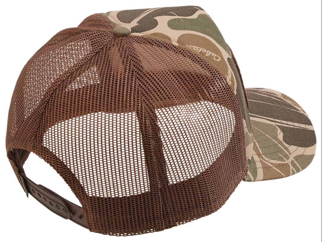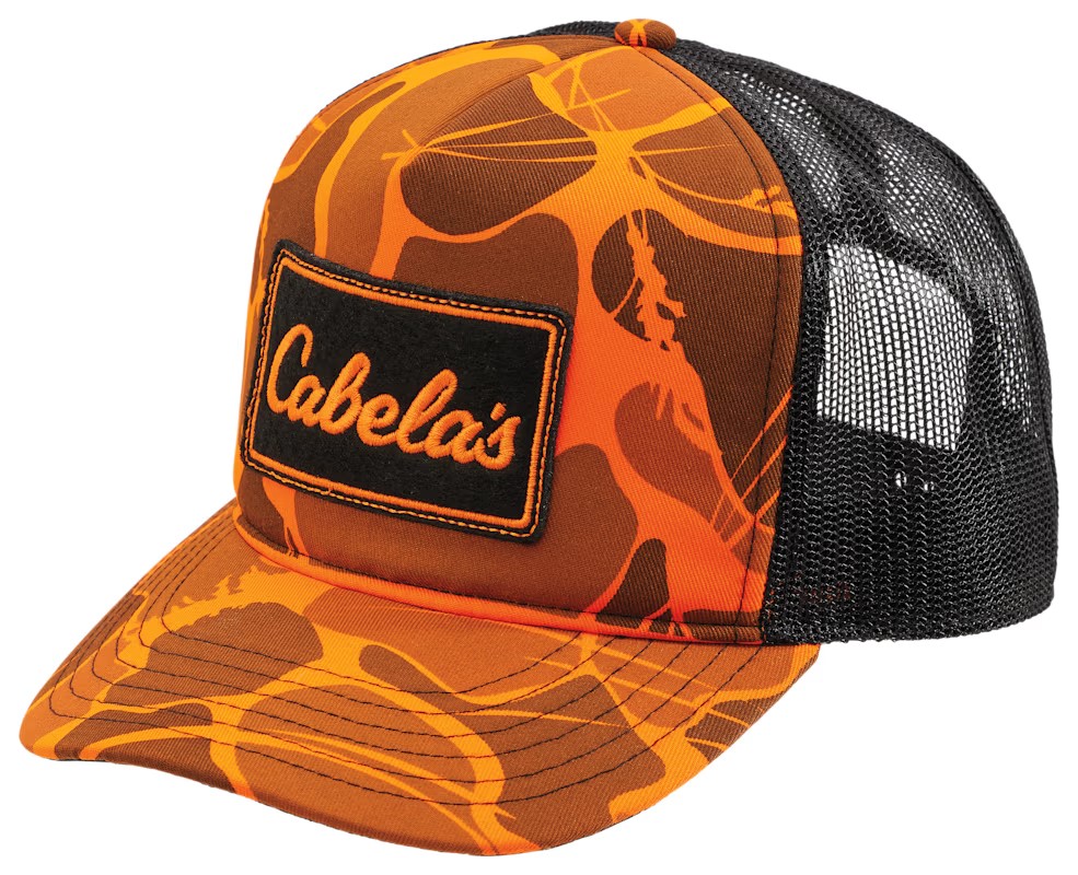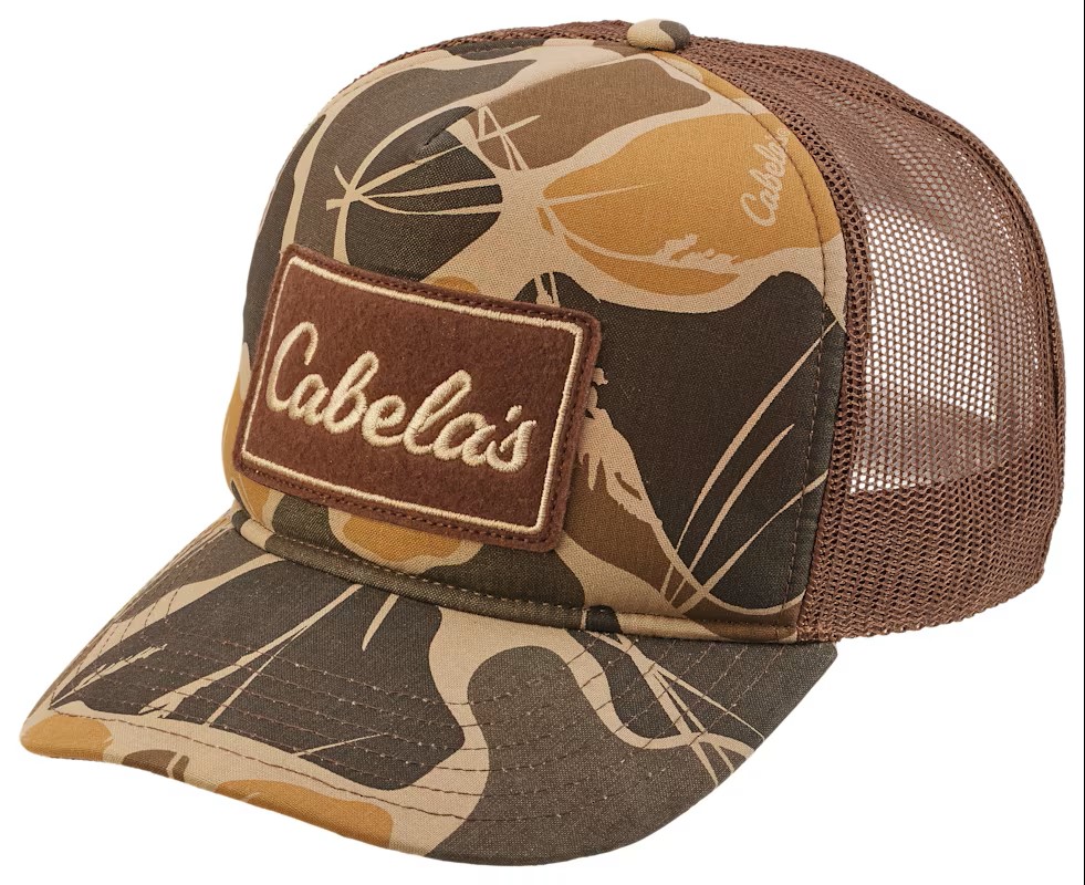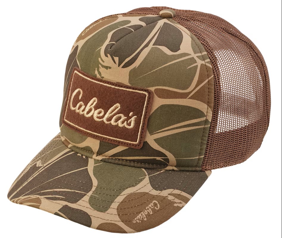 Parche bordado con el logotipo icónico de Cabela’s al frente.